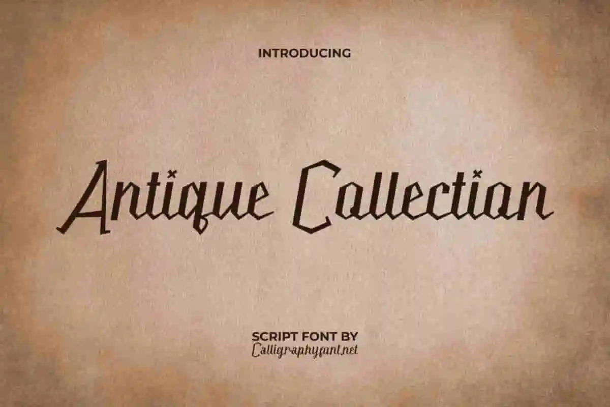 Antique Collection Font is a vintage script font with a unique appearance, created by Calligraphy Fonts. The font has letters that form a hexagon and each line is sharp making this handwriting stand out with an antique feel and will be perfect for your creative projects, such as brand logo, catalog, cover, embossed design, header, invitation, label, packaging design, quote, screen print, stationery, sticker, title, website, and many  more.