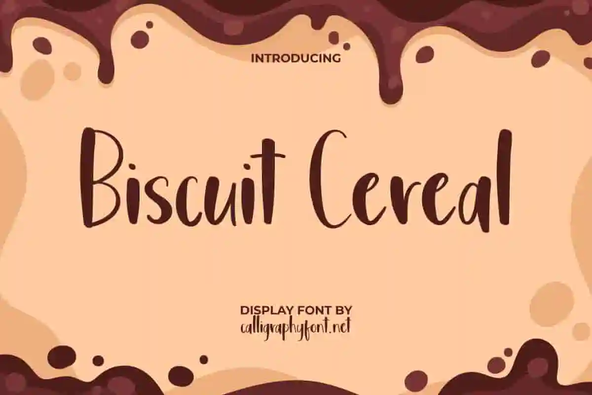 Biscuit Cereal Font is a sweet display font that brings a handcrafted personal touch and will complement your designs, such as blogs, brand identity, brochure, business cards, cover, flyer, greeting cards, header, headline, invitation, logo design, packaging design, art posters, quotes, restaurant menu, screen print, stationery, title, website, much more!