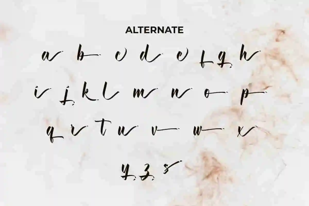Blethers Font is a feminine script font with the charm of the calligraphy style. The font has beautiful elegant characters with bold and stylish contrasting strokes. Addition of ligature characters and alternative styles to increase the artistic value of the font. The character of the letters imitates the beauty of human writing because it is handmade and can perfect your design needs so that it feels a personal touch, whether in terms of creating book titles, invitation cards, label, logo designs, product packaging, short text or even long text and perfect for combining fonts with sans or serif, social media, stationery design, sticker, website, and other things.