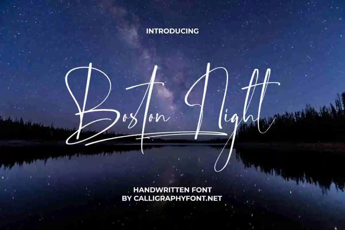 Boston Night Font is a fresh and elegant script in signature style. It has a natural and modern feel which is the perfect choice for making wedding invitation, fashion brand, home decor blog, or just for writing on the background.