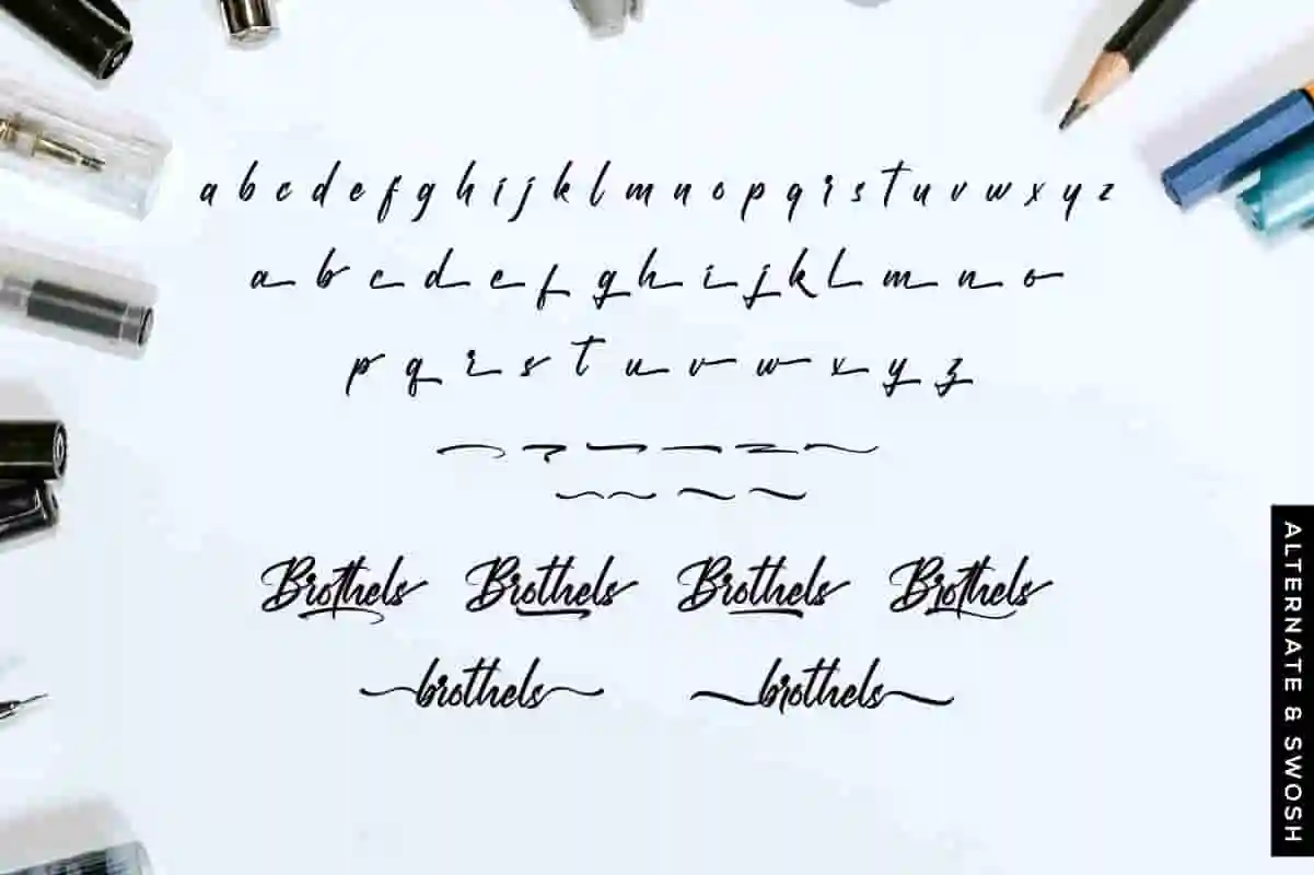 Brothels is a brush font with a unique texture; delivering a stylish script which is guaranteed to add an eye-catching appeal. The style of this font are stylish, classic, elegant, a fresh new handwritten brush script with a touch of class, and of course, outstanding looks 🙂