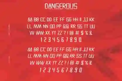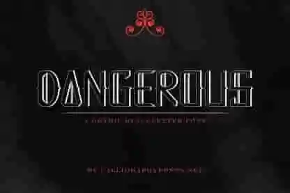 With a style that balances dark elegance and gritty strength, Dangerous is perfect for projects that demand a strong presence: band merch, horror movie posters, gothic fashion branding, editorial covers, tattoo designs, and rebellious logos.