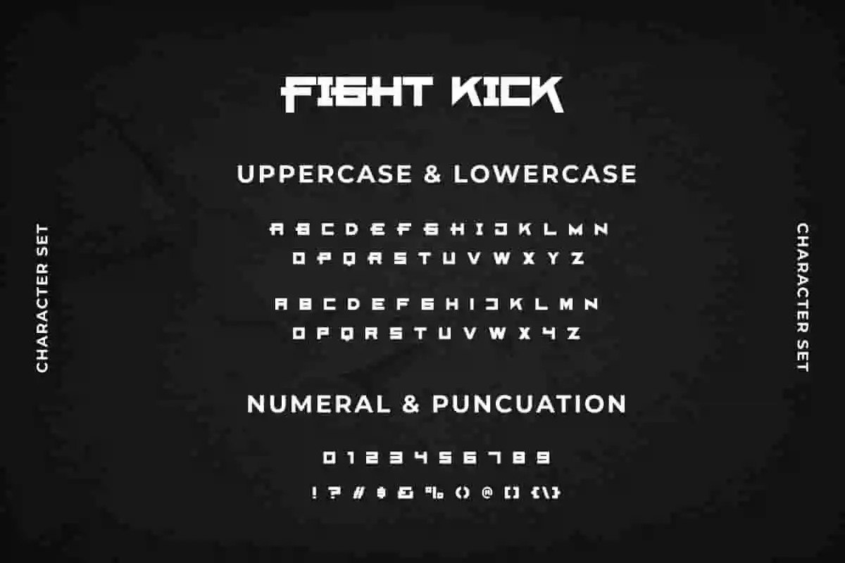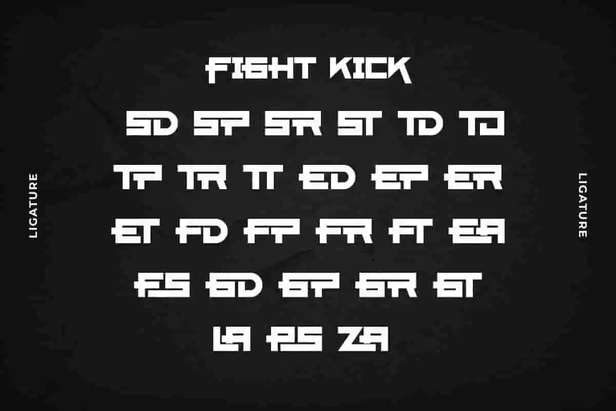 Fight Kick Font is a sporty sans serif display font family. The style of this font are modern, techno, strong, masculine, sporty etc. Great for logo, brandings, headlines, signage etc. Fight Kick Font come with some ligatures like the “tr” , “sd”, etc, the ligatures will make the font stand out and really stunning unique. The font will be awesome for many industries including : sports, techno, festival, games, movies etc