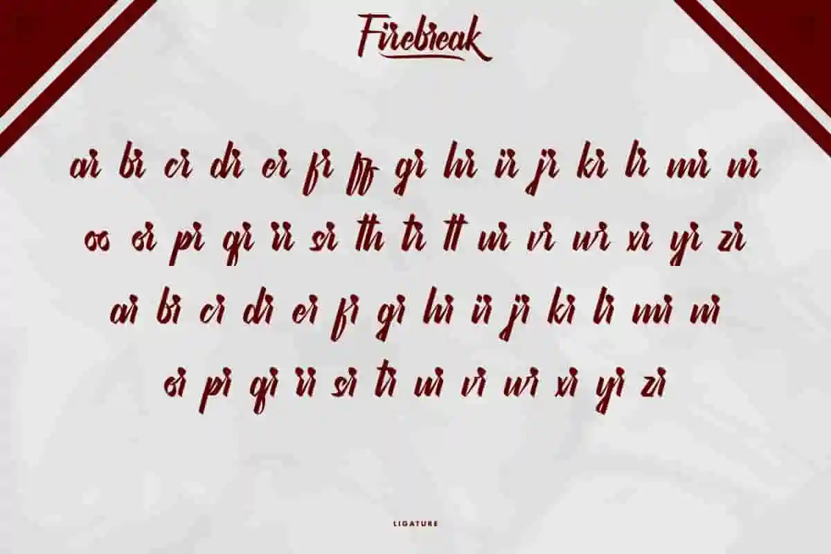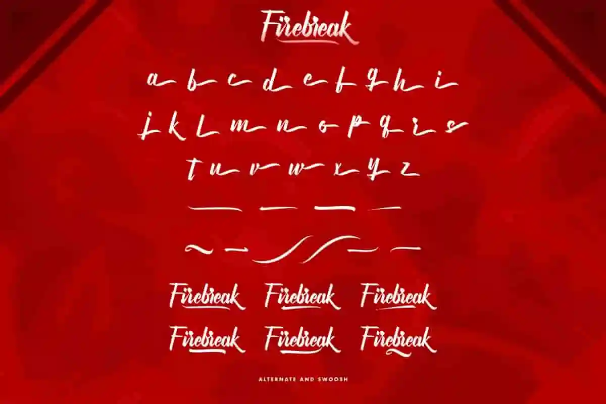 Firebreak Font is a bold handmade calligraphy script font. It has special looks that are beautiful, classic, elegant, luxury, lettering and sophisticated brush font.