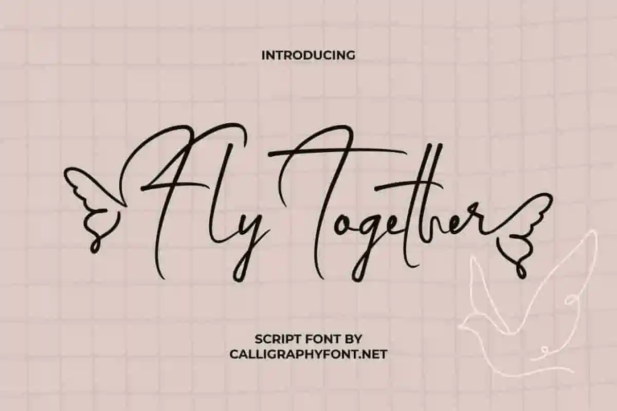 Fly Together Font is a unique decorative handwriting font created by Calligraphy Fonts.net. The font has a sleek and thin shapes, making it authentic, perfect for your creative projects such as : brand logo, brochure, business card, catalog, header, invitation, label, quote, stationery, website, and much more.