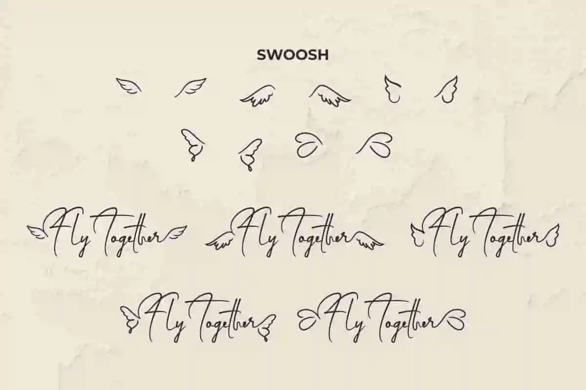 Fly Together Font is a unique handwriting script font with decorative lines. The font will be perfect for brochure, clothing brand, greeting card design, or simply use it in your background writing.