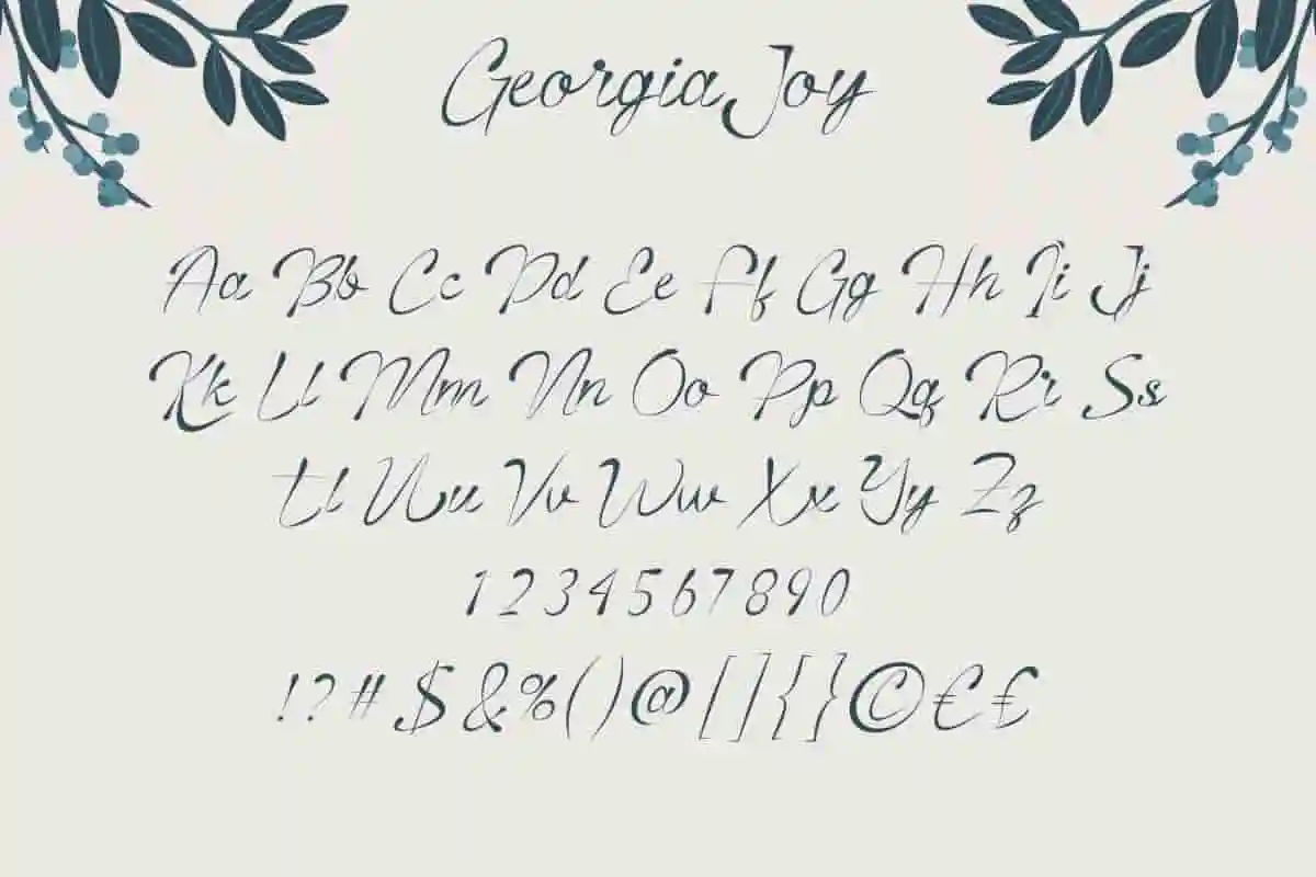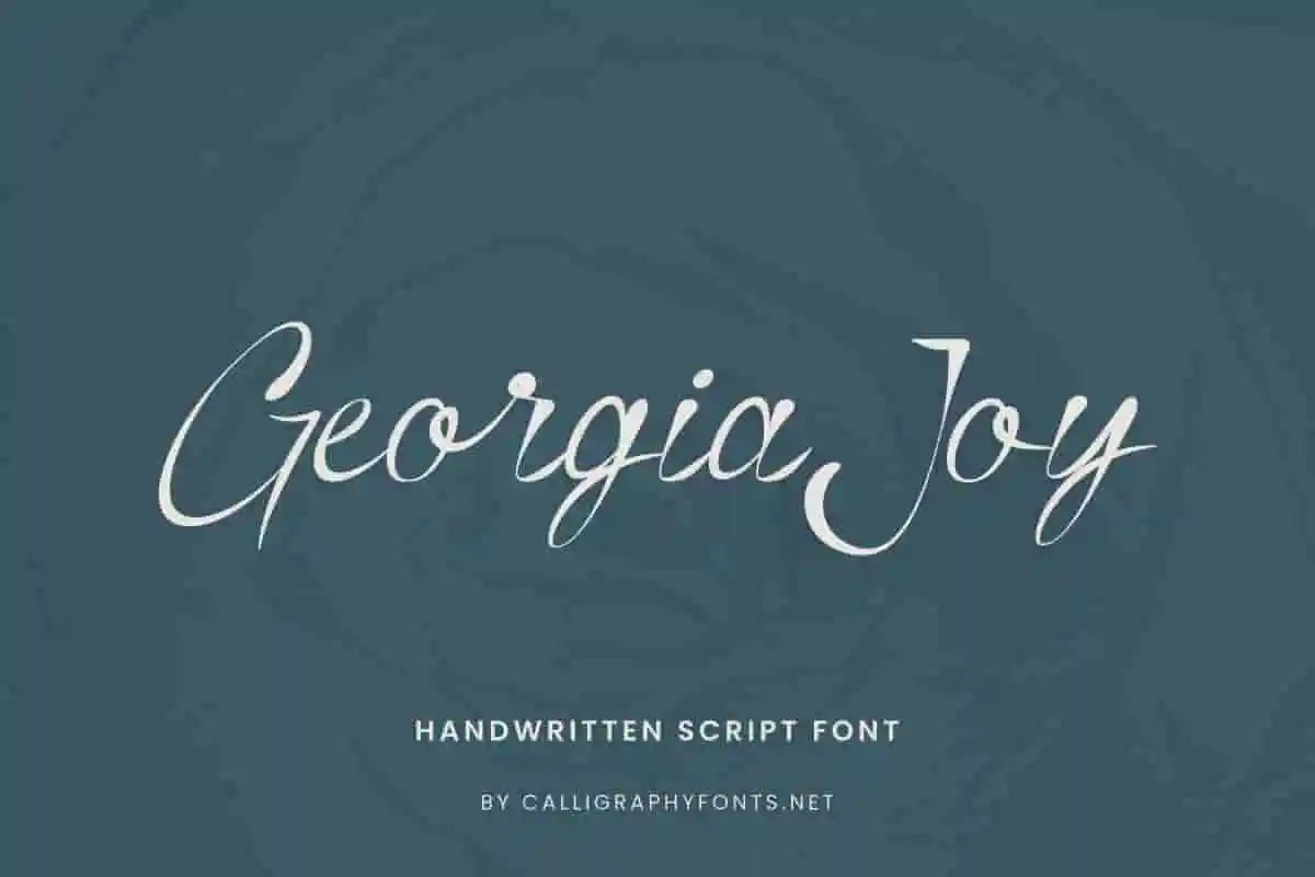 Georgia Joy Font is a beautiful handwritten script font with casual look created by Calligraphy Fonts, inspired by cursive writing of the nobles in European countries. This font is perfect for your creative projects such as brochure, business card, creating logo, headline, label, letterhead, printed design, product packaging, quotes, title, etc.