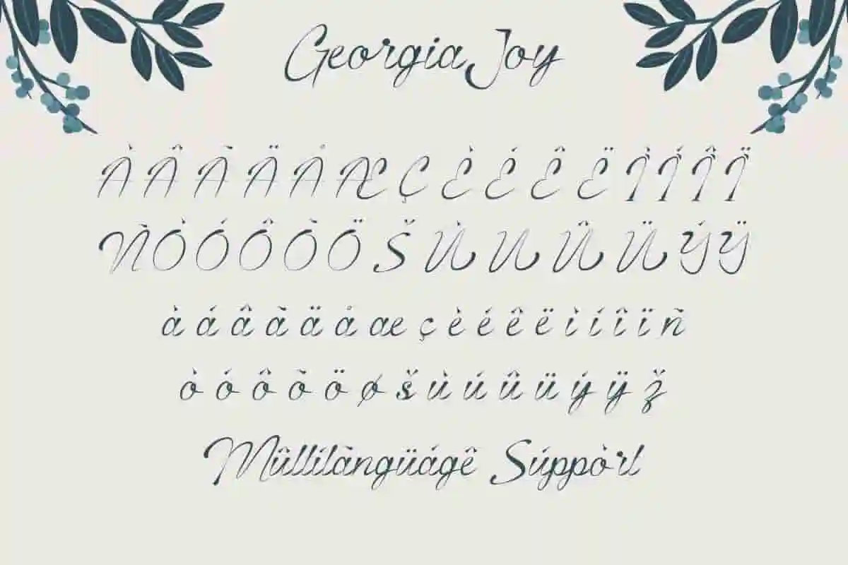 Georgia Joy Font comes with a full set of Uppercase and Lowercase Basic Characters, Number, a large range of Punctuation and Symbol, Ligature, and also supports multilingual characters. Ready to use both on Windows machine or Mac with simple installations. It’s tested to work well in the Adobe Apps (Illustrator, Adobe InDesign, Adobe Photoshop) CorelDraw, and others. PUA Encode Characters means you can access all the glyphs and other additional characters easily – Fully accessible without additional design software.