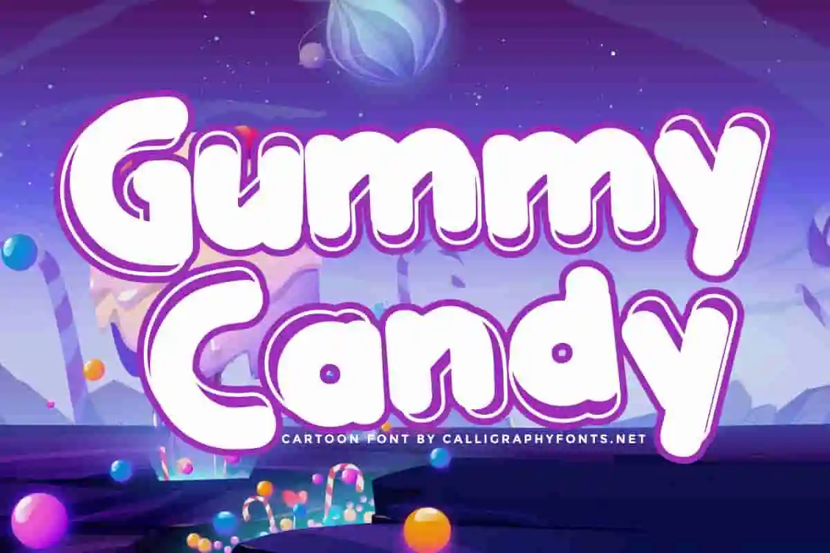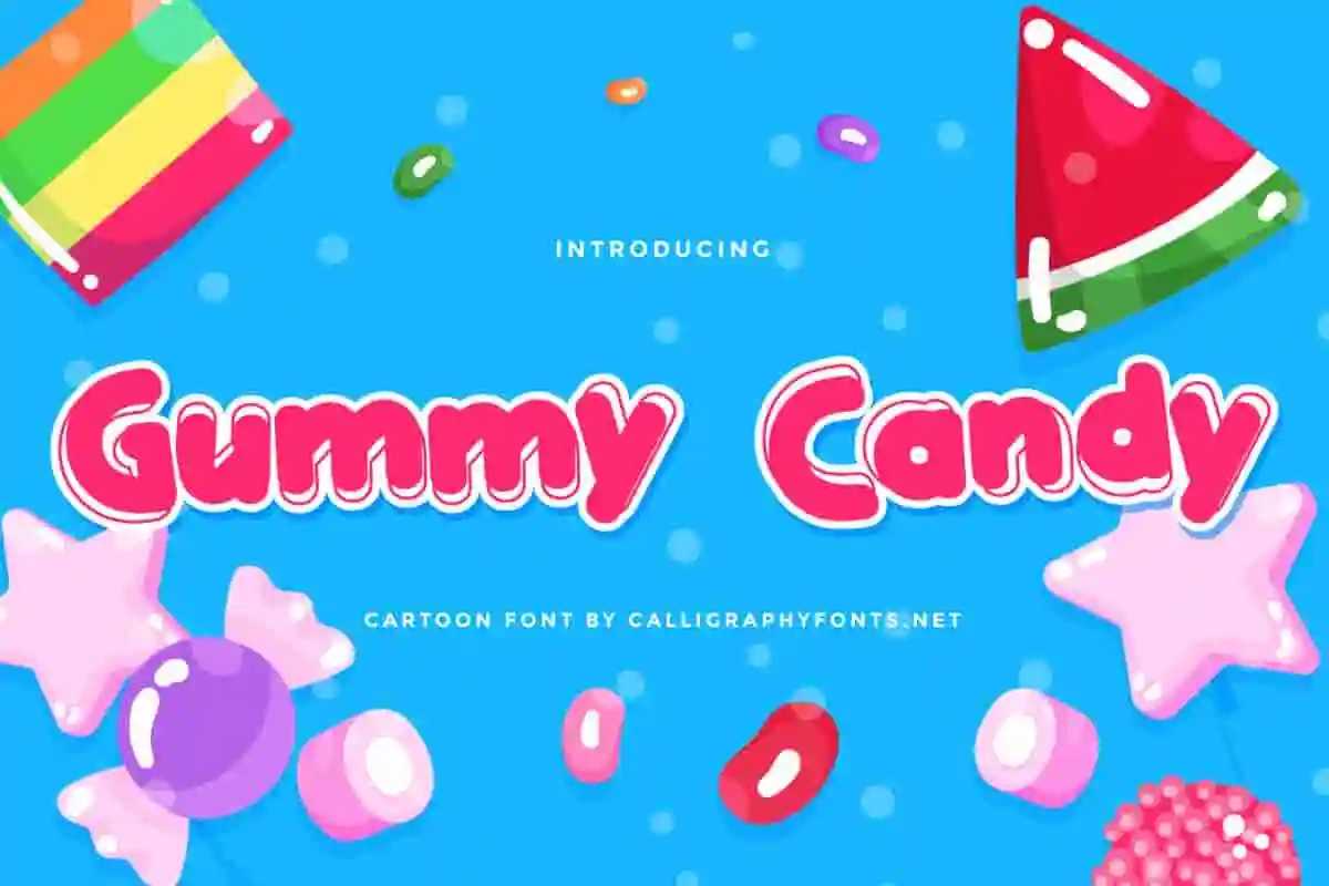 Gummy Candy Font is a cartoon font from CalligraphyFonts.net suitable for entertainment, food and beverage industry, toys and other amazing your products. Download for commercial use now!