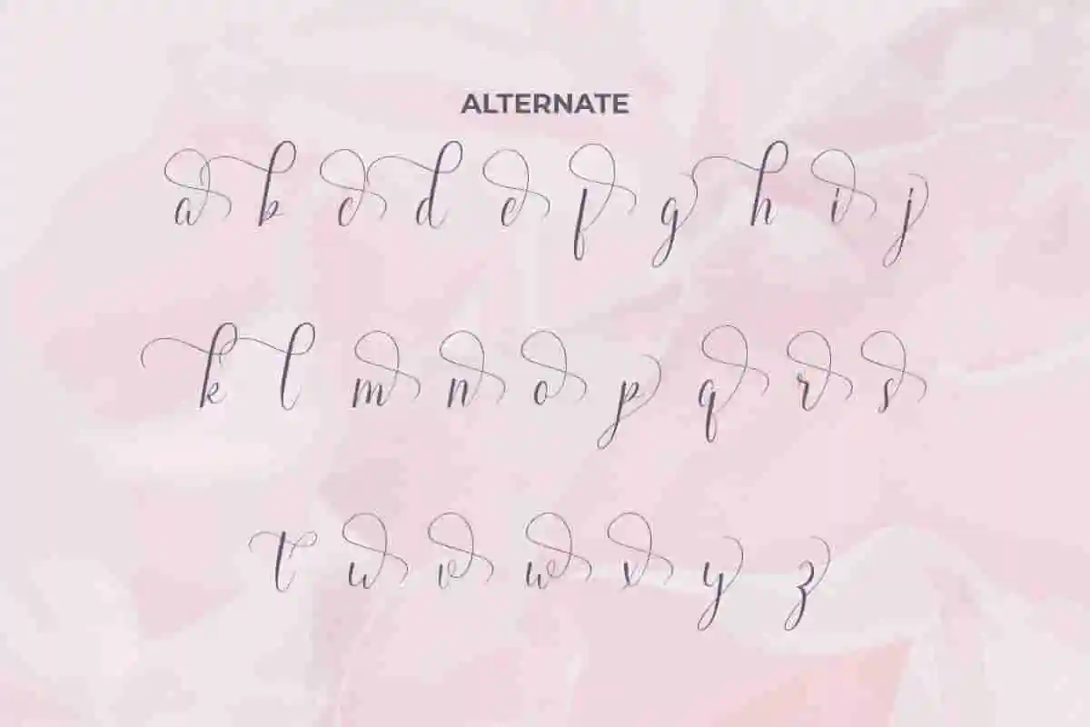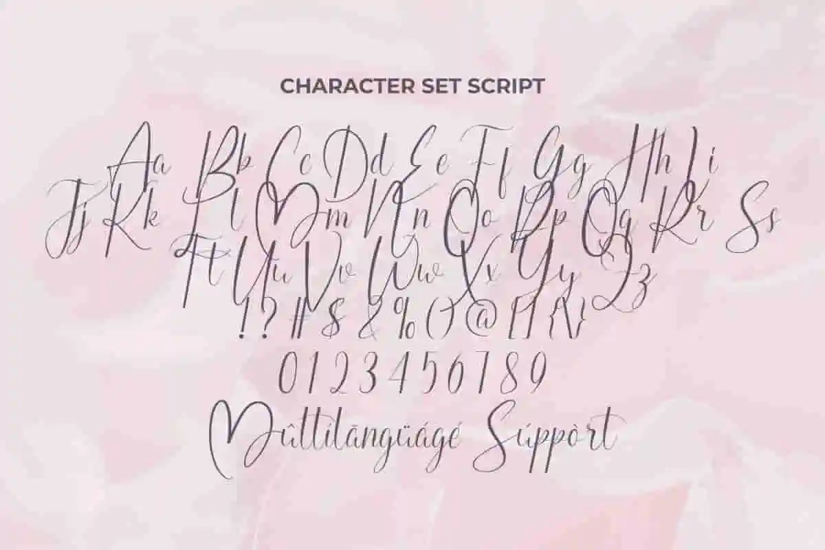 - Full set: Uppercase and Lowercase letters • Numbering and Symbols • Alternate • Ligatures • Swoosh • Multilingual Support •