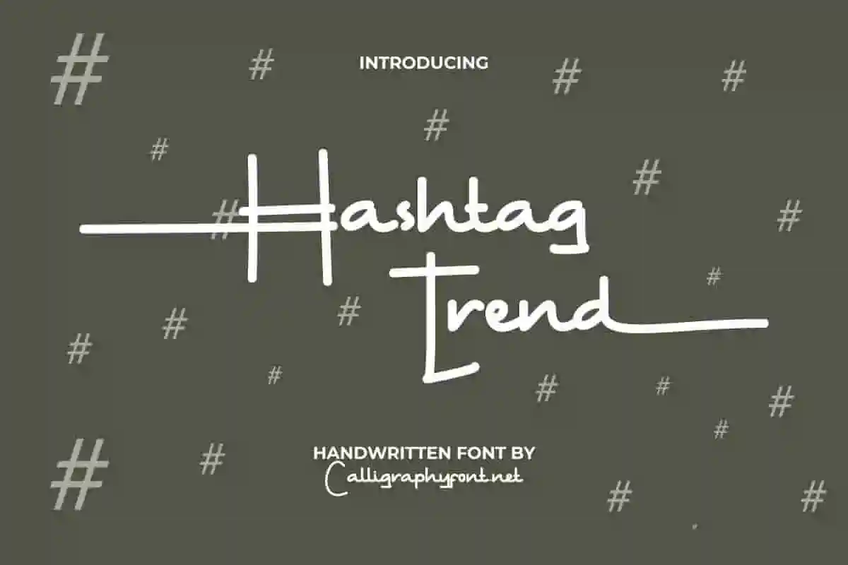 Hashtag Trend Font is a stylish handwritten font with a clean elegant monoline style, created by Calligraphy Fonts. Net. The font has a strong lines with hand-drawn letterforms which will guaranteed to stand out in your designs, including : brand logo, business card, label, menu, product packaging, stationery, title, website, etc.