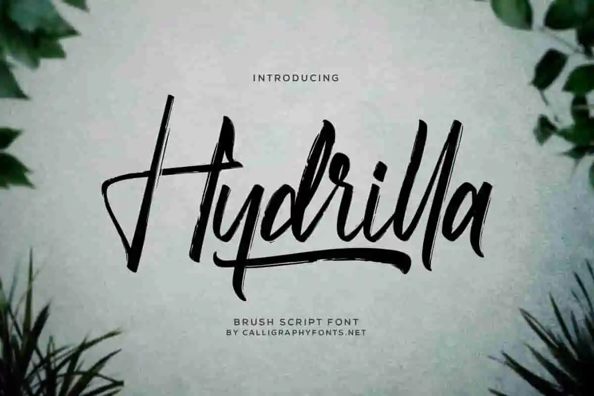 Hydrilla Font is a stunning textured brush font by CalligraphyFonts.net, Buy License to use it for Commercial purposes. Awesome for branding projects, homeware designs, product packaging – or simply as a stylish text overlay to any background image.