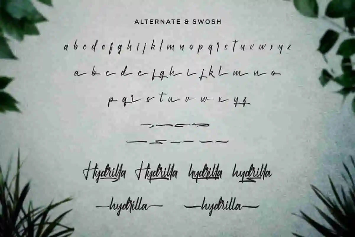 Hydrilla Font tested Work on PC & Mac, the font is inspired by old style and combination with Hand Lettering style. We made with personality touch every single curve. I hope this can make inspire you from your work. will be awesome for wedding, logos, handwritten quotes, product packaging, header, poster, merchandise, social media & greeting cards. Also great for branding projects, homeware designs, product packaging – or simply as a stylish text overlay to any background image.