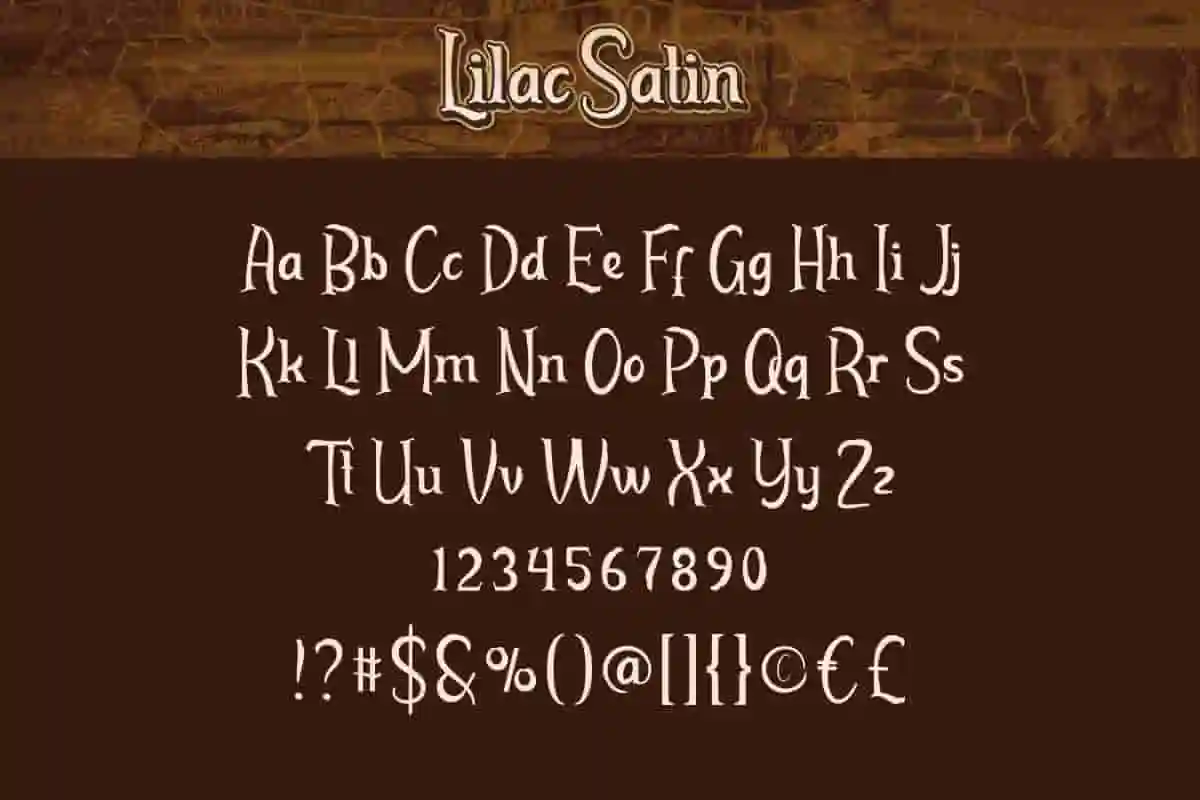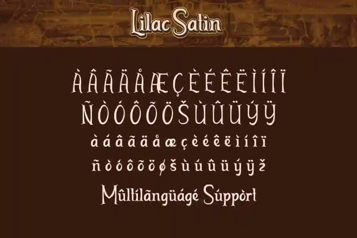 Lilac Satin Font is a unique vintage serif display font created by Calligraphy Fonts. This font has a gothic shape with an authentic vibe that would be perfect for projects, such as label, literary header, rock music poster, signage, stationery, t-shirt design, vinyl cover, and anything that needs a classic yet mysterious touch to your creative projects.