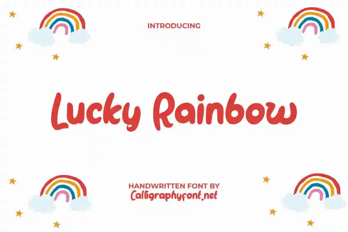 Lucky Rainbow Font is a adorable handwritten brush font. This font can make your design even more adorable and never boring to look at. It will be good to perfect any project design, such as brand image, brochure, cover, custom design, flyer, invitation, label, marketing material, menu, poster, signage, screen print, stationery, sticker, thank you card, title, website, and many more!