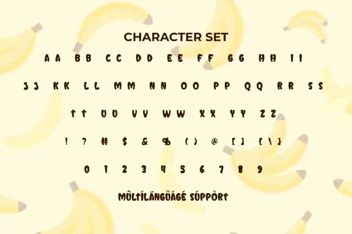 Mini Banana Font can make each of your designs look funny with its style, so it can be used by various industries, such as advertising, bakery and pastry, content creator, event or festival, fashion, food and beverages, graphic design, handicraft, interior design, kids stuff, printing, publishing, restaurant, etc.