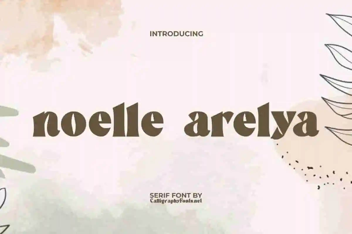 Noelle Arelya Display Font is a serif font with a bold and impressive look. It is sure to create a professional font look and ensure that the message conveyed through the text remains easy to read and understand. This font is ideal for author, beauty clinic, clothing brand, cosmetologist, craft, fashion, florist, furniture, graphic design, photography, printing, publishing, skincare, spa salon, writer, more.