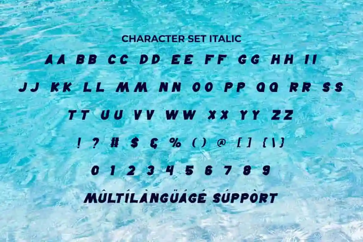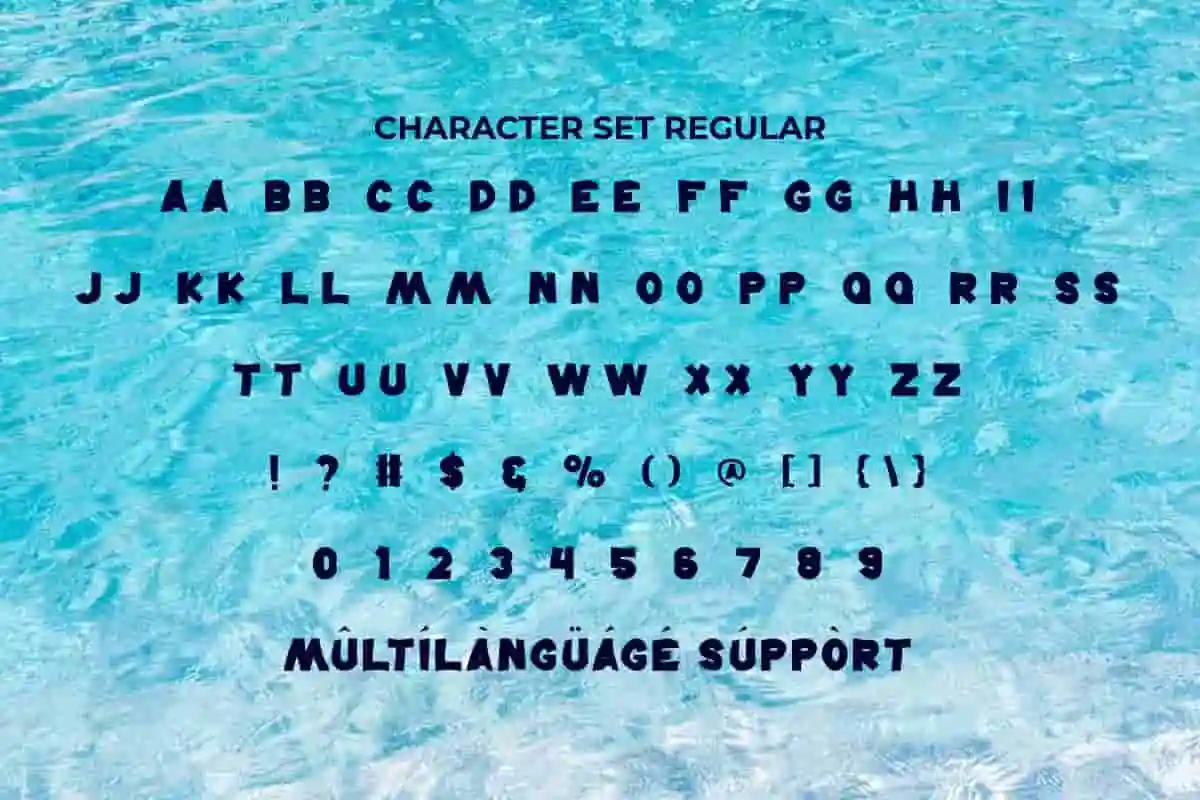 Ocean Series Font is a fun holiday themed font with a wavy block style. It has a modern look with wave effects on some of the characters making it unique and has two styles: Regular and Italic which will suit any industry, such as accessories, advertisement, artist, clothing brand, culinary, event or festival, fashion designer, handicrafts, homeware, movie, printing, publishing, seafood restaurant, swimwear, writer, and many more.