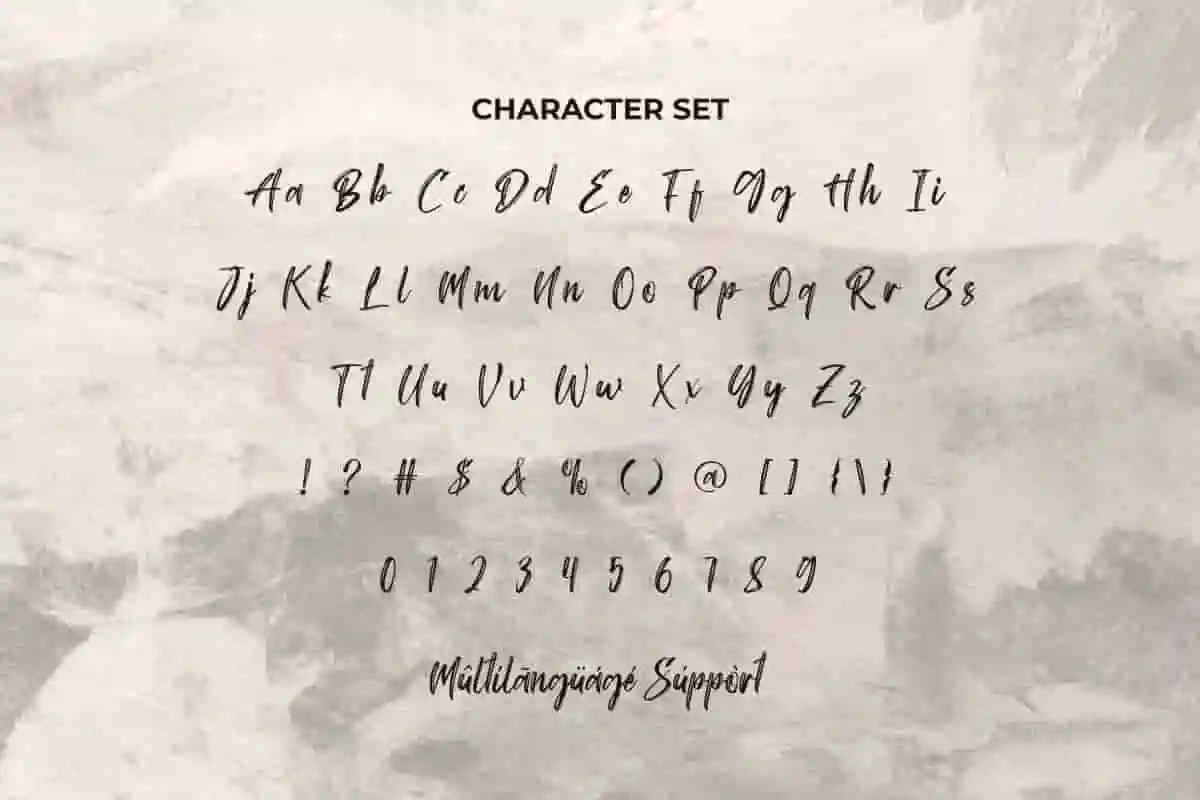 Originale Brush Font comes with a full set of Uppercase and Lowercase Basic Characters, Number, a large range of Punctuation, and Symbol. It will enhance your creative projects, such brand logo, brochure, card design, cover, embossing designs, flyer, invitation, label, mockup designs, packaging design, screen print, stationery, sticker, title, website, or just the art of writing on a background.
