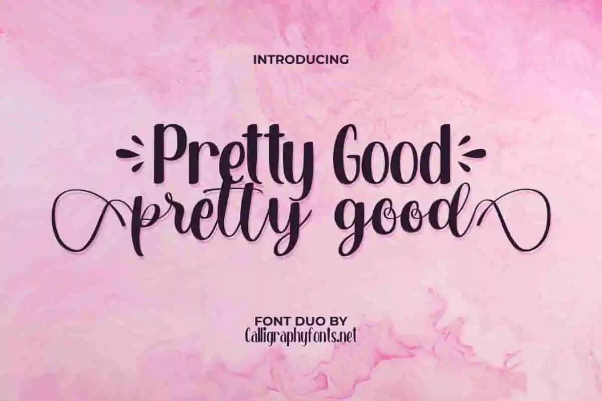 Pretty Good Font is a Font Duo with two cute and pretty styles : Regular and Calligraphic Script font. Both fonts can bring uniqueness and casual handwriting feels to your projects. This fun new font duo will be perfect for creating product designs, quotes, brands, crafting, birthday invitations, wedding or just adding a handwritten touch to any projects!