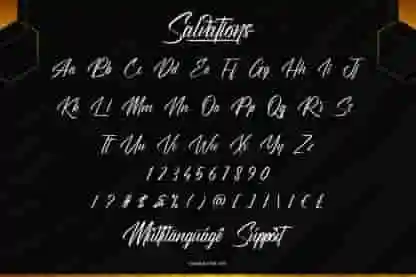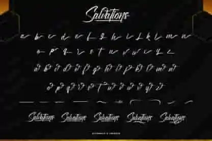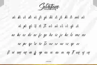 Crafted with sweeping strokes and delicate details, Salvations brings a sense of romance, elegance, and luxury to your typography. Each letter flows smoothly into the next, creating a harmonious script that feels both artistic and professional.