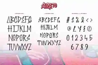 Whether you’re working on album covers, streetwear branding, event posters, or edgy social media graphics, Secreto Graffiti Font delivers authentic character and undeniable attitude. The sharp angles, fluid strokes, and spontaneous flair make every word feel alive and unfiltered—just like graffiti should.