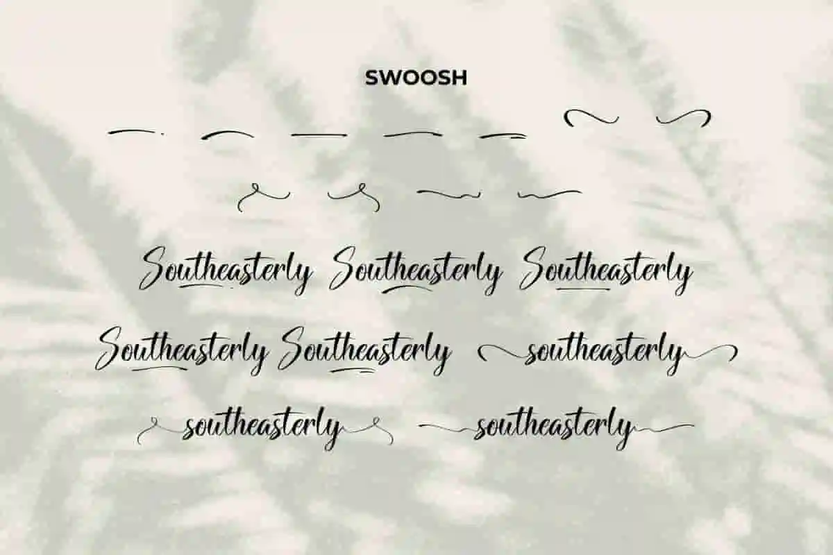 Southeasterly Font will be great for any industry, including: architect, boutique, cosmetic, fashion brand, home decoration, publishing, real estate, restaurant, salon, spa, wedding organizer, writer, and everything that needs a touch of classy script.