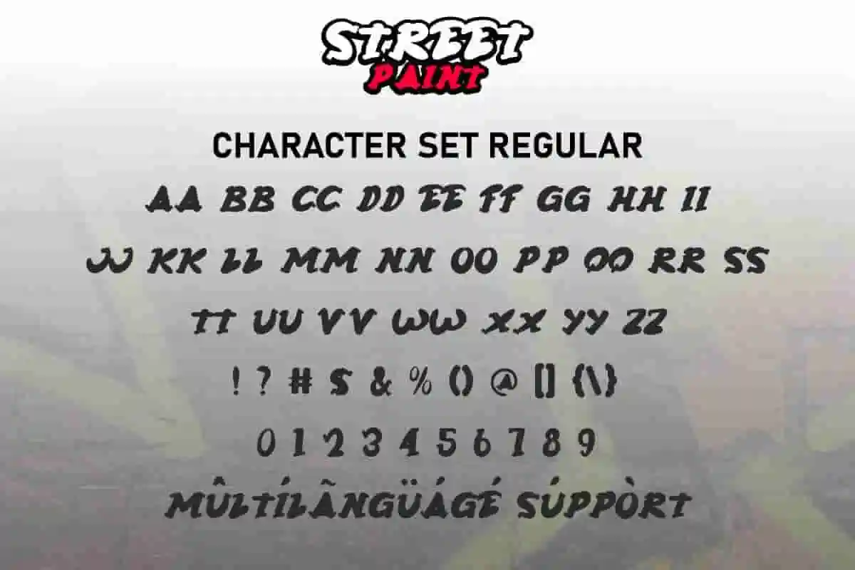 Street Paint Font will be versatile for any category or industry related to café, clothing brand, craft, film, game, race, rock band music, sport, street artist, and anything that requires a heavy look from street art. It will also make your art stand out and stand out from other graffiti!