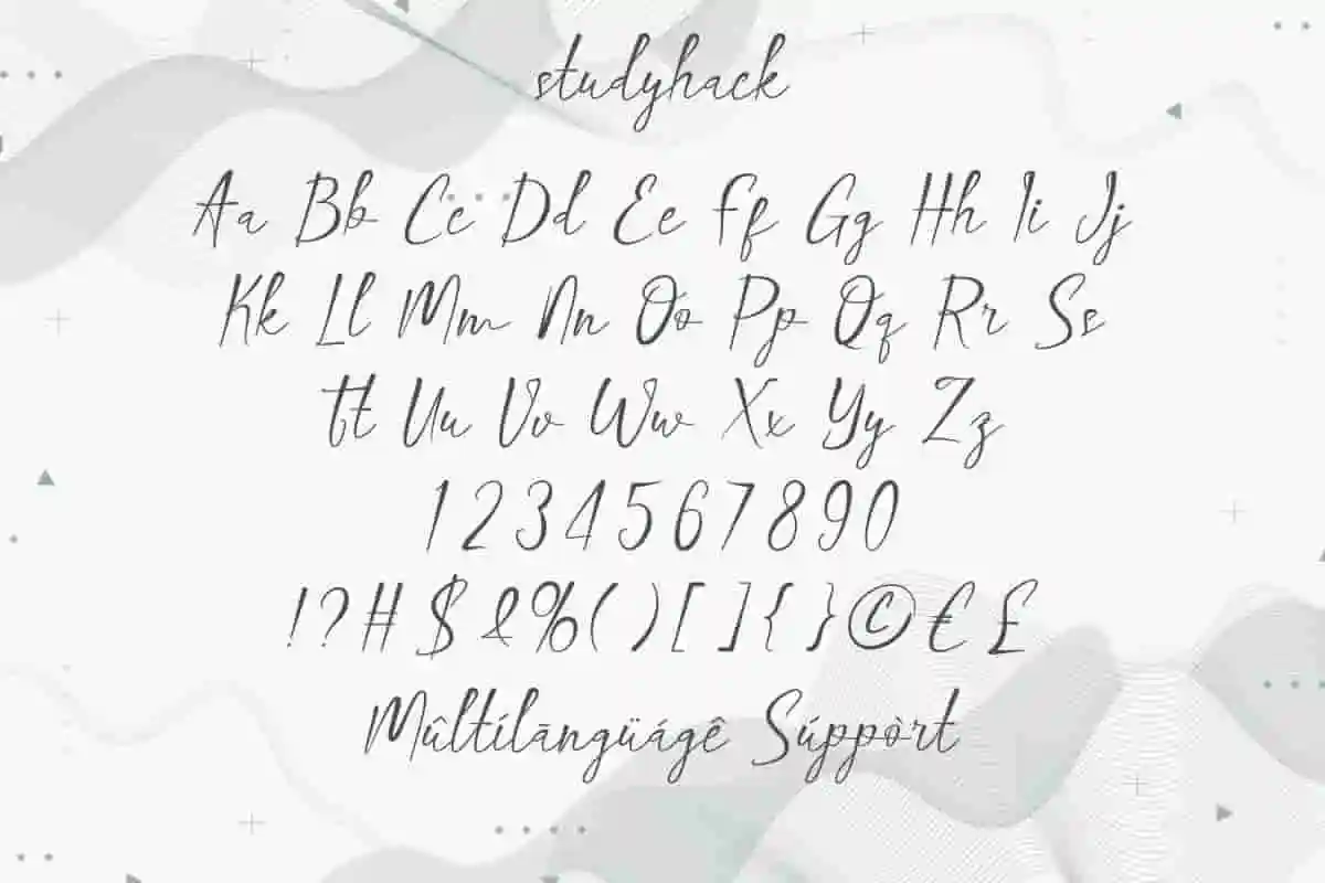 Whether you are designing wedding invitations, branding materials, greeting cards, packaging, or social media graphics, Studyhack Calligraphy Font gives your work a refined and professional finish. Its versatile style makes it suitable for both formal projects and playful creative works, ensuring your message always stands out beautifully.