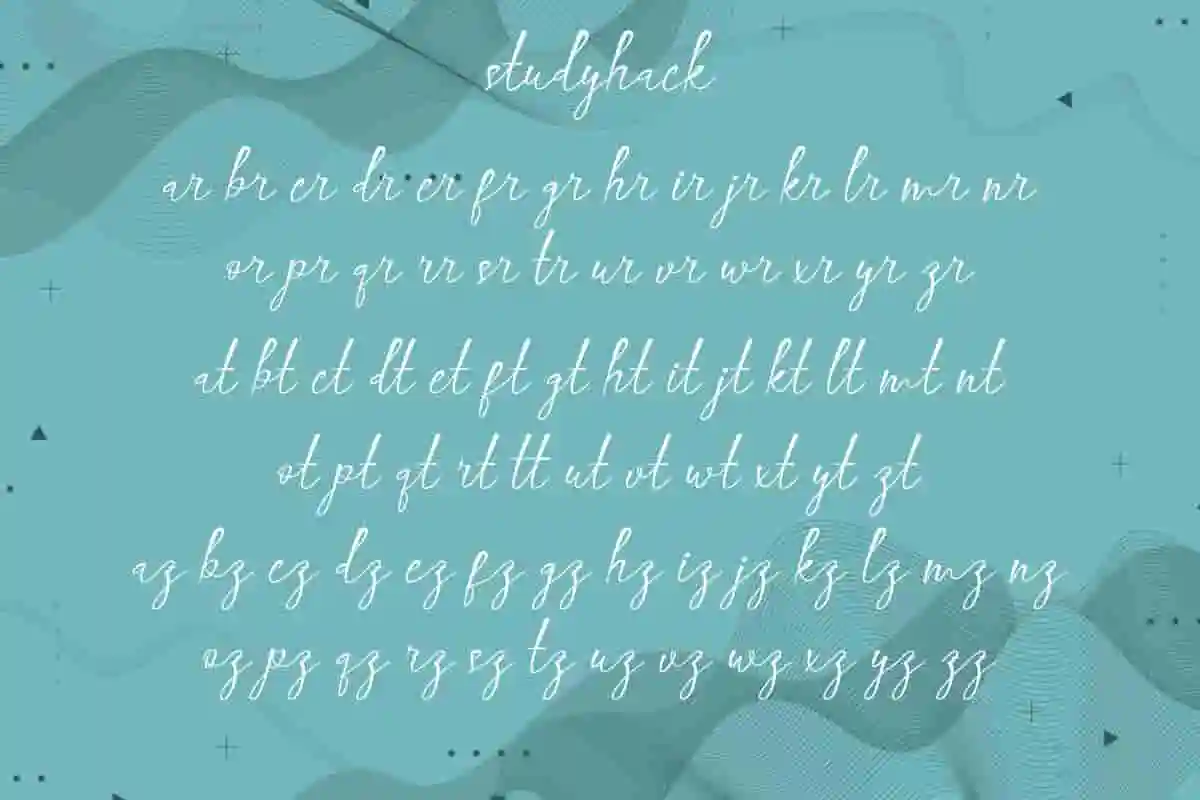 Studyhack Calligraphy Font will be great for many industries, including: bakery, birthday party, wedding stuff, boutique, cosmetic, event organizer, fashion, pastry, perfume, restaurant, school, spa salon, and anything that requires a cheerful calligraphy look. Carefully crafted to create perfection in writing and add aesthetics to every design created.