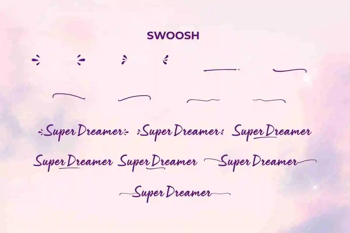 Super Dreamer Font is a fancy thin brush calligraphy writing script font. It offers a free-flowing and natural handwriting style. It has a relaxed and friendly aesthetic that can add a human touch to any design, such as blogs, brand logo, cards, cover, custom mockup, header, print on fabrics, quotes, social media post, template design, title, website, and others.