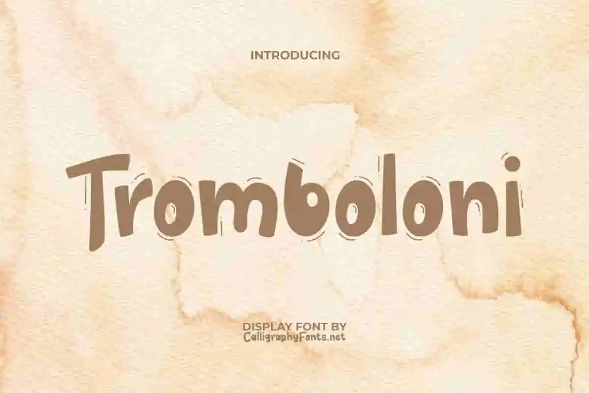 Tromboloni Display Font is a creative display font inspired by comic cartoons with unique effects on each character. The best font ever and created to accommodate the needs of creations that require dynamic, eye-catching, and easy-to-read letters. It is perfect for accessories and gifts, fashion, graphic design, handicraft, home furniture, movie, photography, printing, publishing, spa salon, toy store, and so much more.
