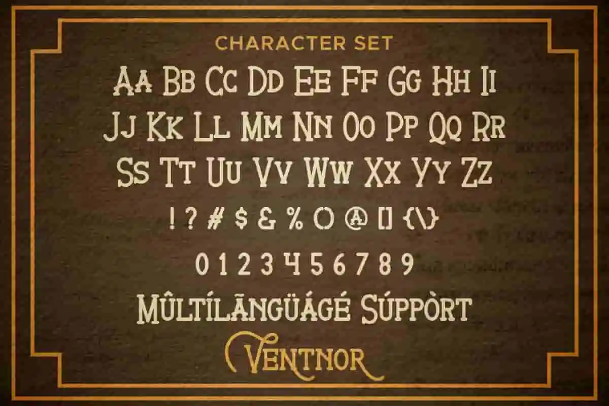 Ventnor Display Font comes with uppercase and lowercase letters, numerals, and punctuation marks. It supports multilingual characters, ensuring your creative work can reach global audiences without losing its unique aesthetic. The font’s crisp detailing and balanced proportions make it easy to read while maintaining a high-end look.
