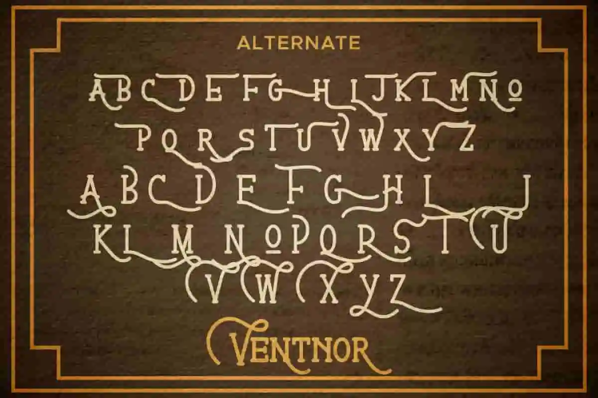 Ventnor is a vintage display font family. The style of this font are stylish, classic, elegant, vintage and strong brush font.