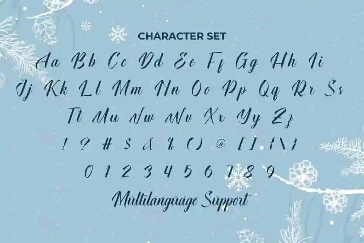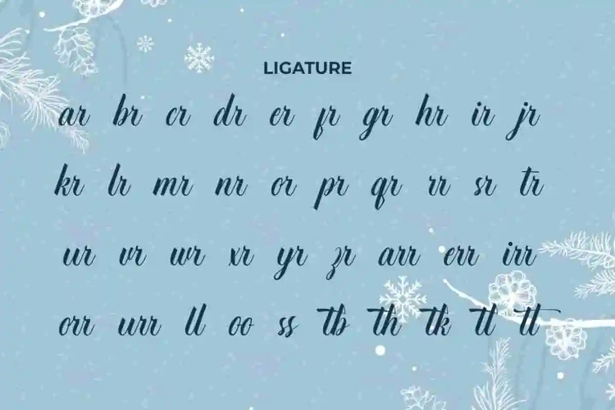 Winter Sweetheart Calligraphy Font comes with a complete set of Uppercase and Lowercase Basic Characters, Number, a large range of Punctuation, Symbol and Ligature. It is supported with multilingual characters and ready to use both on Windows machine or Mac with simple installations. It’s tested to work well in the Adobe Apps (Illustrator, Adobe InDesign, Adobe Photoshop) CorelDraw, and others. PUA Encode Characters means you can access all the characters easily – Fully accessible without additional design software.
